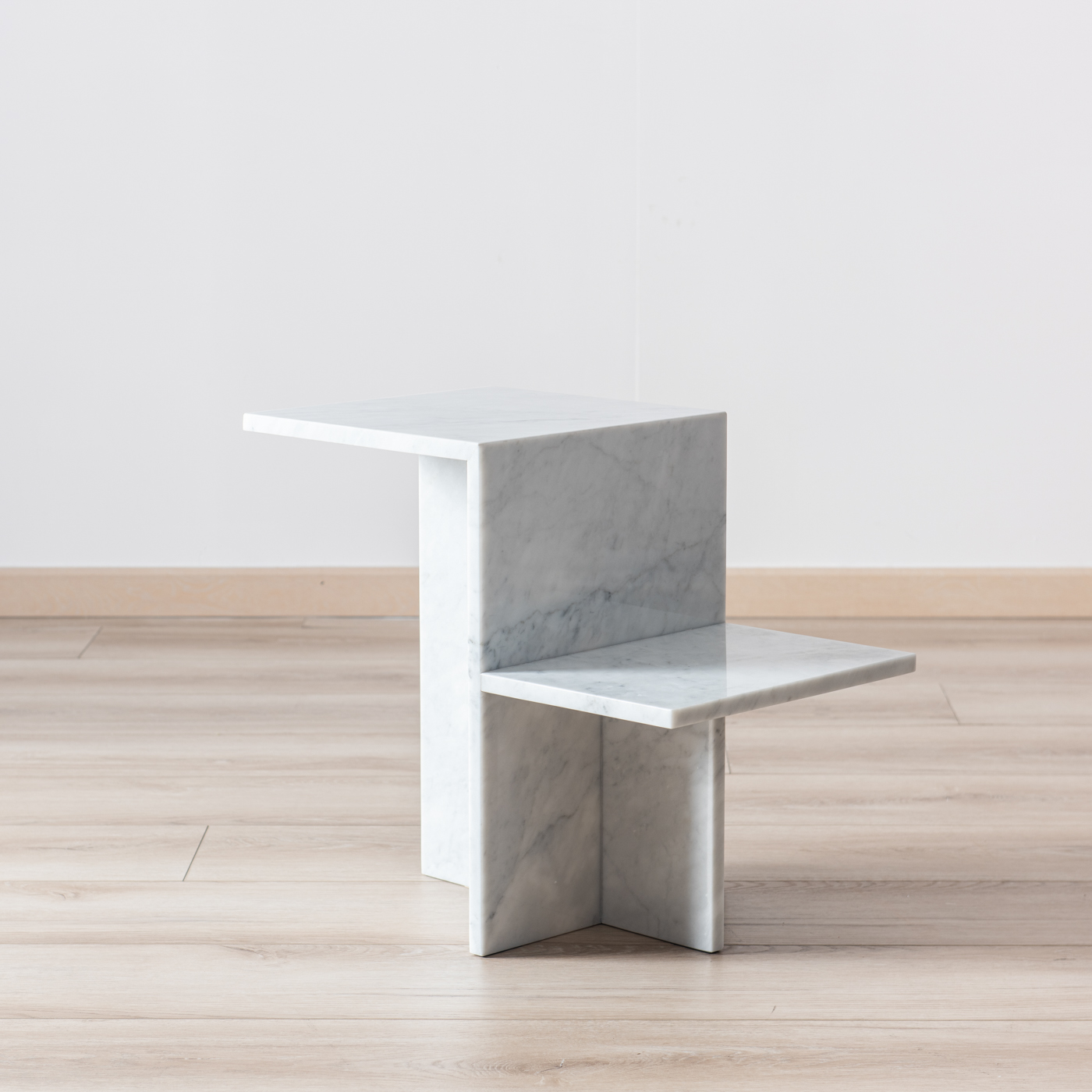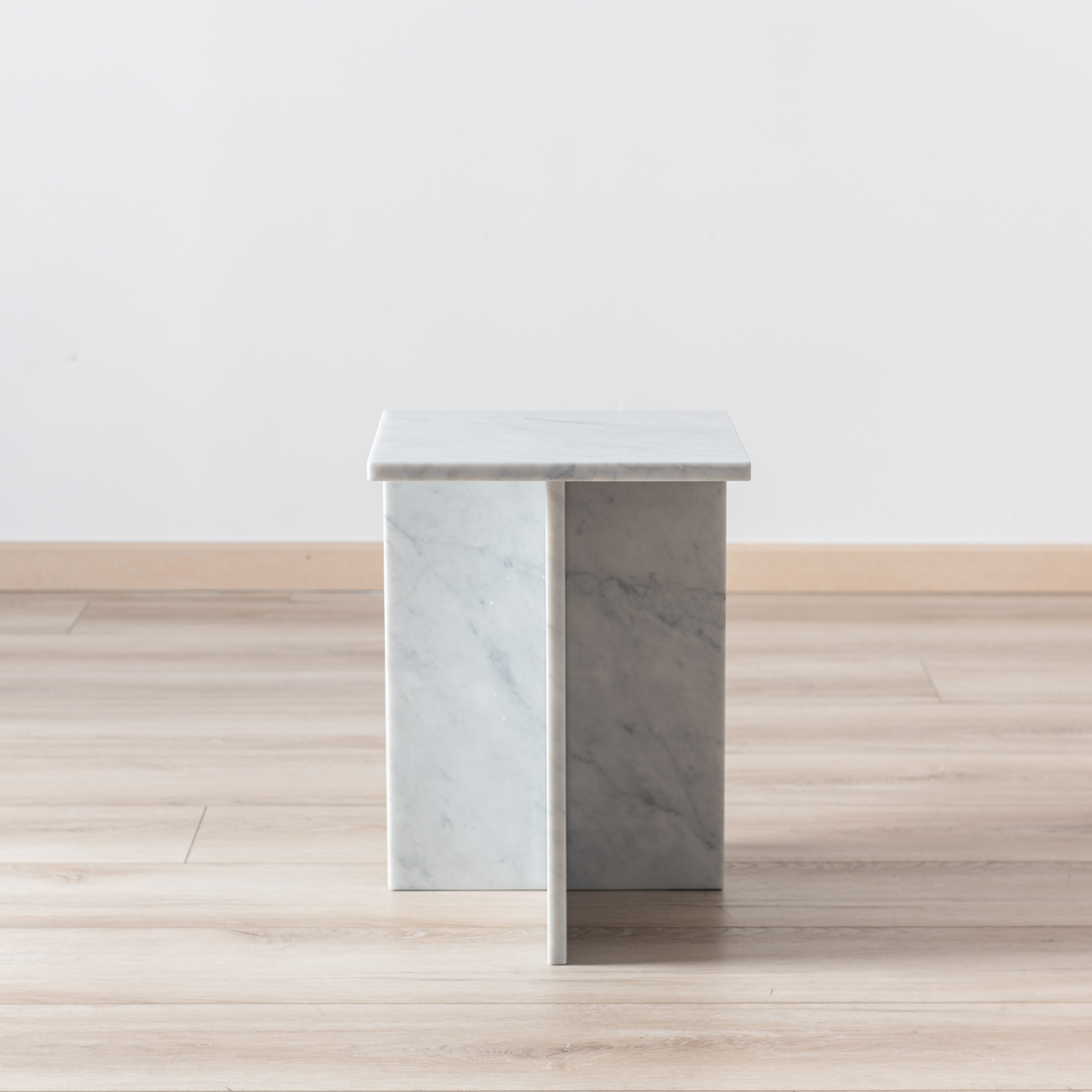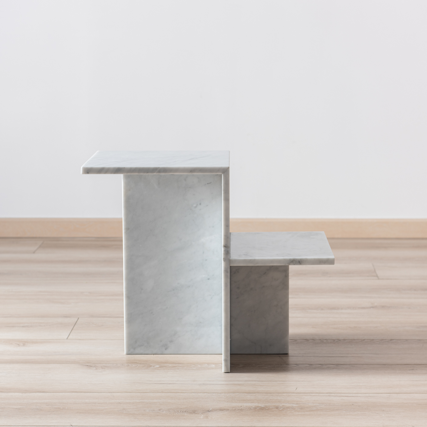 Toàn bộ bàn được làm từ đá marble nguyên khối, bề mặt mài bóng giúp phản chiếu ánh sáng tốt, mang lại cảm giác không gian rộng rãi và cao cấp. Chất liệu marble có độ bền tương đối tốt, chịu lực và chịu nhiệt phù hợp cho nội thất, đồng thời được xử lý bề mặt đúng kỹ thuật giúp hạn chế thấm nước và thuận tiện cho việc vệ sinh hằng ngày.