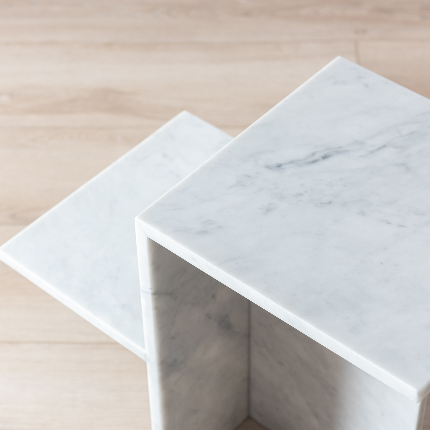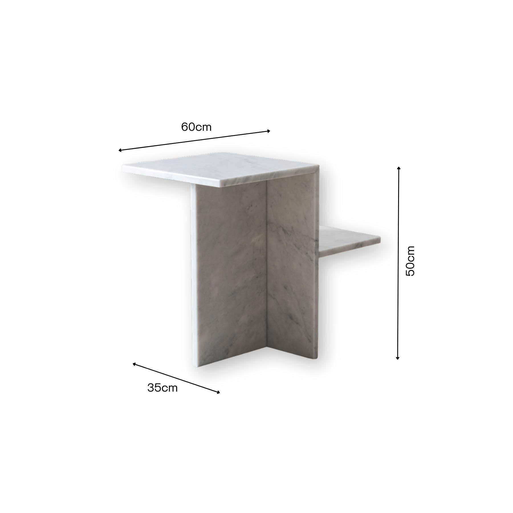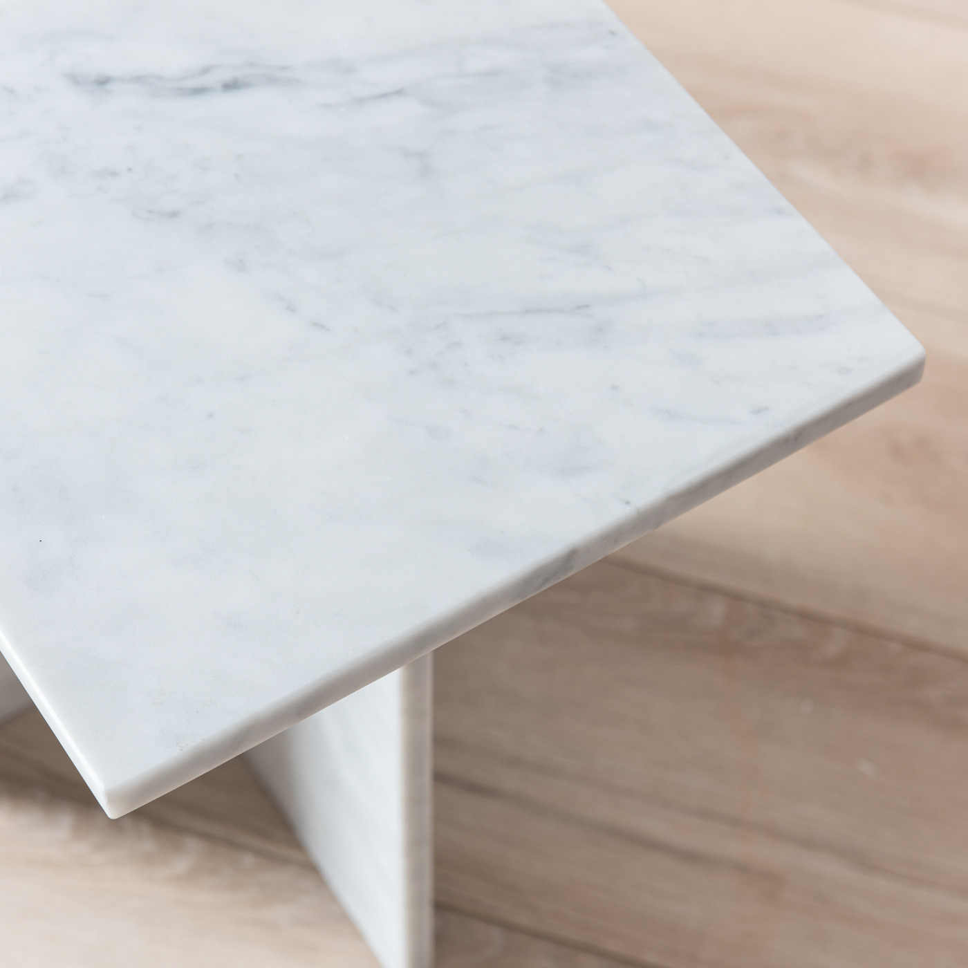 Toàn bộ bàn được làm từ đá marble nguyên khối, bề mặt mài bóng giúp phản chiếu ánh sáng tốt, mang lại cảm giác không gian rộng rãi và cao cấp. Chất liệu marble có độ bền tương đối tốt, chịu lực và chịu nhiệt phù hợp cho nội thất, đồng thời được xử lý bề mặt đúng kỹ thuật giúp hạn chế thấm nước và thuận tiện cho việc vệ sinh hằng ngày.