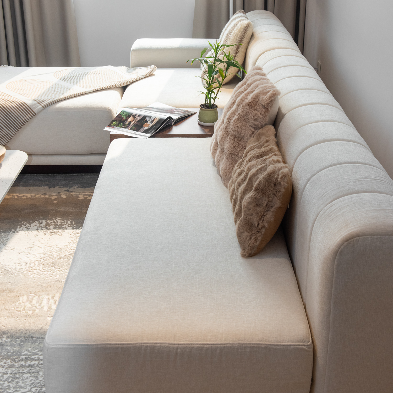 Ghế sofa Chandley nổi bật với thiết kế sofa góc hiện đại, đường nét vuông vức và tinh giản. Tông màu trung tính kết hợp chi tiết gỗ tạo cảm giác ấm áp, sang trọng, dễ dàng hòa hợp với nhiều phong cách nội thất khác nhau.