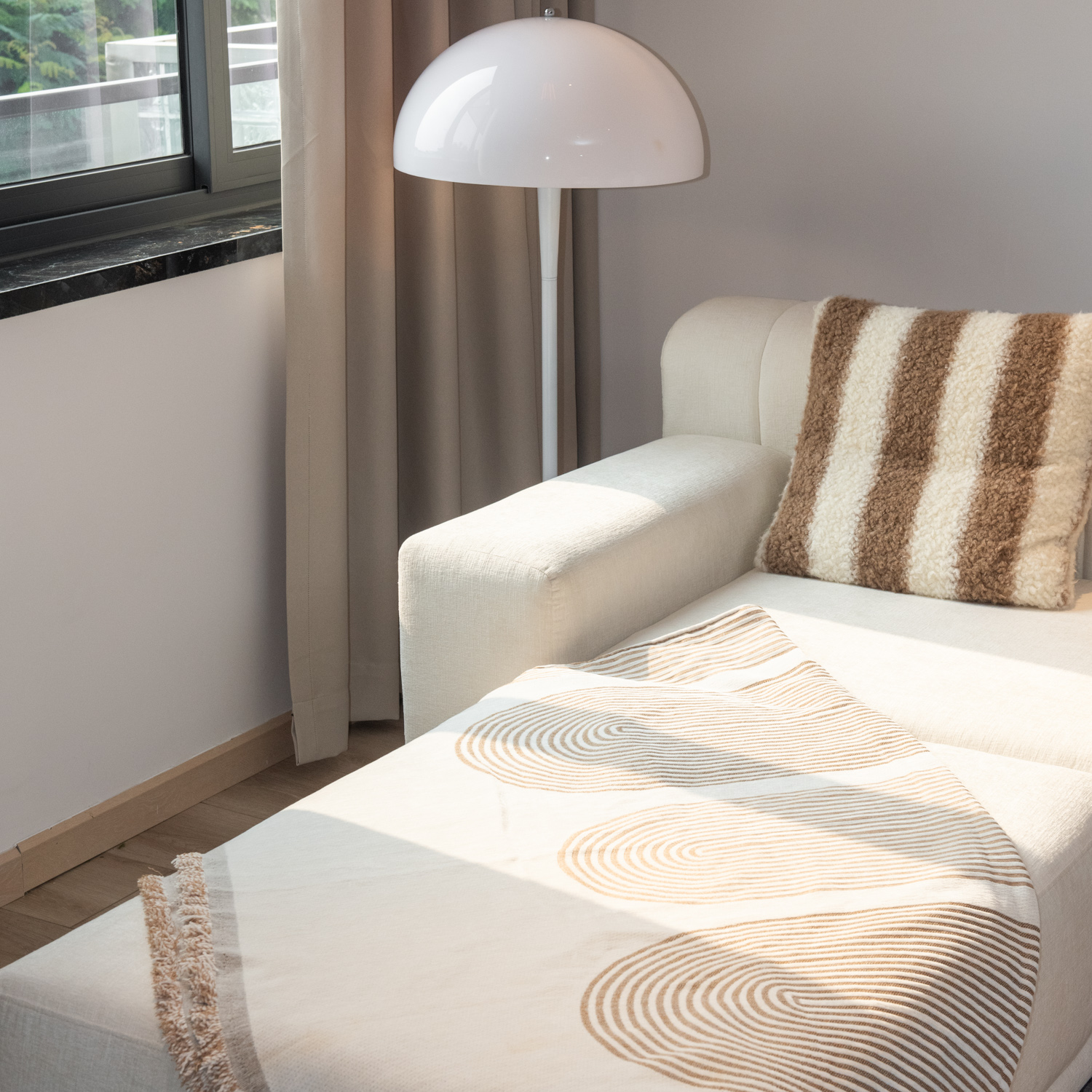 Sofa được bọc vải cao cấp mềm mại, thoáng khí, mang lại cảm giác êm ái khi sử dụng. Đệm ngồi dày dặn cùng phần tựa lưng chắc chắn giúp nâng đỡ cơ thể tốt, phù hợp cho cả sinh hoạt hằng ngày lẫn những buổi thư giãn dài. Khung gỗ bền chắc đảm bảo độ ổn định và tuổi thọ lâu dài.