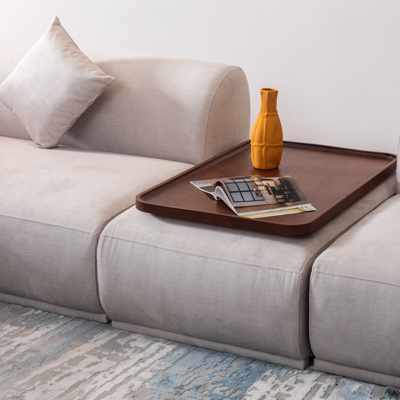 Khung làm từ gỗ tự nhiên cùng sự kết hợp của vải bọc chắc chắn sẽ mang lại cho bạn cảm giác thoải mái nhất.