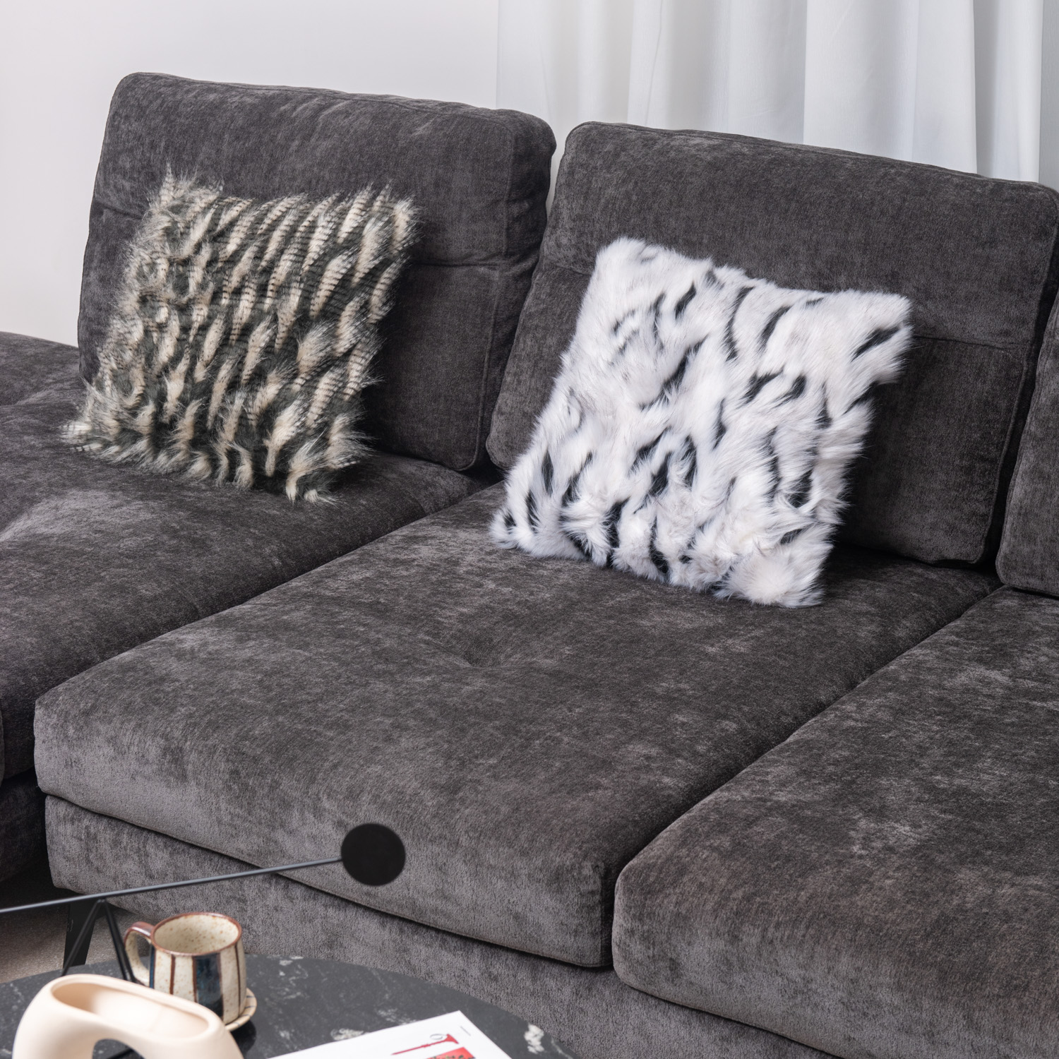 Sofa sử dụng chất liệu bọc cao cấp, bề mặt mềm mại, thoáng và bền màu theo thời gian. Đệm mút dày dặn kết hợp tựa lưng êm ái giúp nâng đỡ cơ thể hiệu quả, mang lại cảm giác thoải mái khi ngồi lâu. Khung chắc chắn cùng thiết kế thông minh giúp sofa vừa bền bỉ vừa tiện dụng, phù hợp với phong cách sống hiện đại.