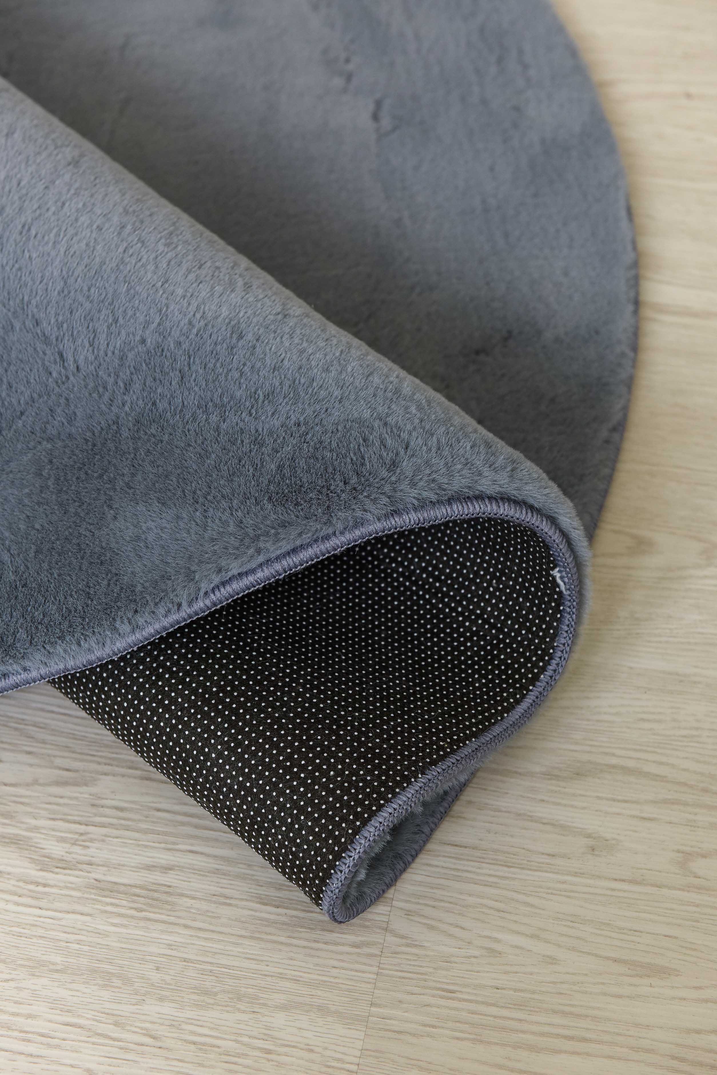 Thảm trải sàn Lapin tròn Ghi lông thỏ với thiết kế tinh xảo và bắt mắt, mặt trên sử dụng chất liệu lông mềm mịn êm ái, gia tăng chất lượng trải nghiệm thảm.
