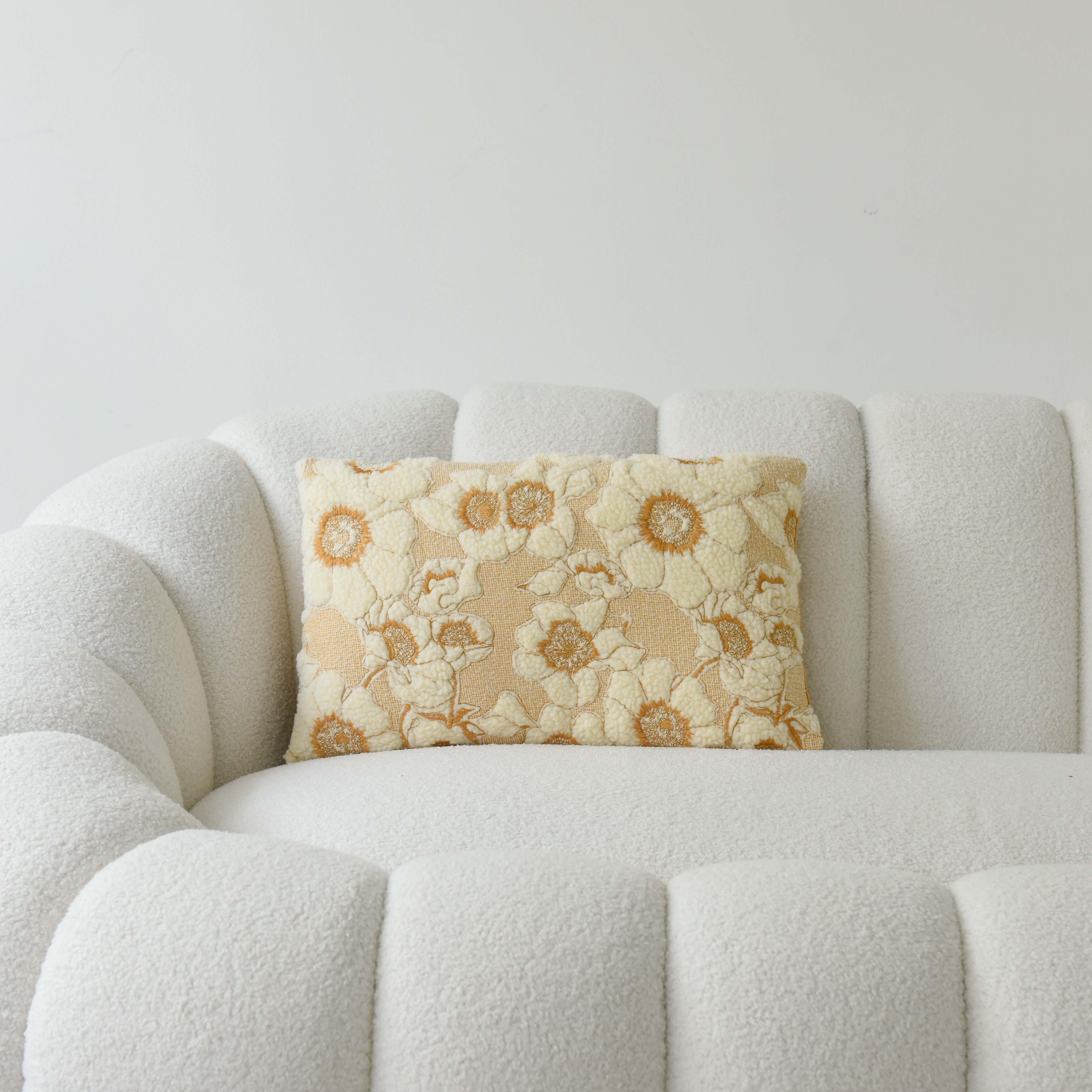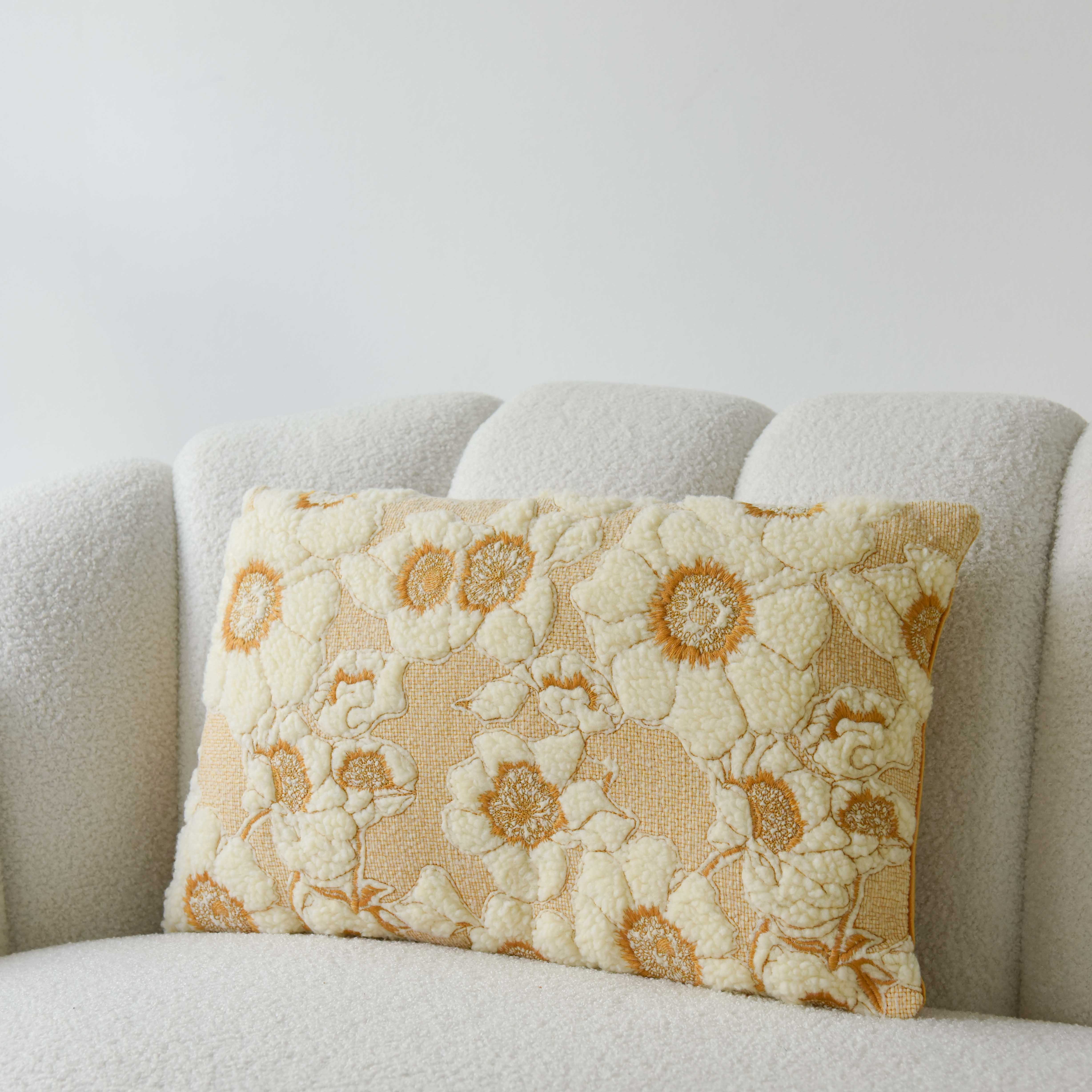 Chất liệu vải sợi polyester thêu nổi bền màu, không gây kích ứng và phù hợp với không gian nhà bạn.
